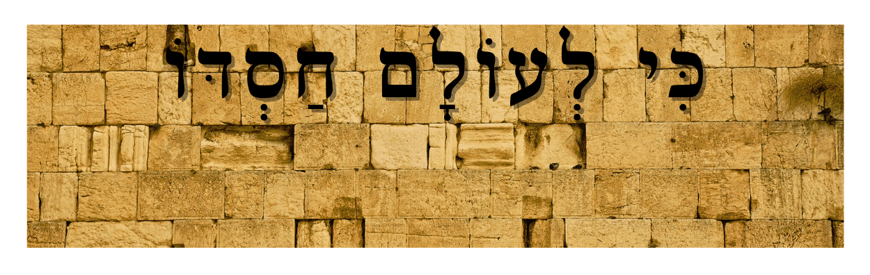 Ki L’Olam Chasdo text over Wester Wall Background.
