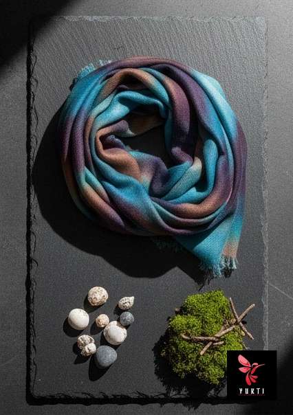 A soft cotton scarf featuring a luminous ombré blend of cool blues and misty neutrals