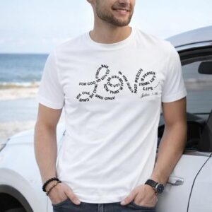 Faith meets creativity in this beautifully designed John 3:16 “LOVE” T-shirt. The word LOVE is formed entirely from the Scripture itself, turning one of the most powerful verses in the Bible into a meaningful visual statement.
