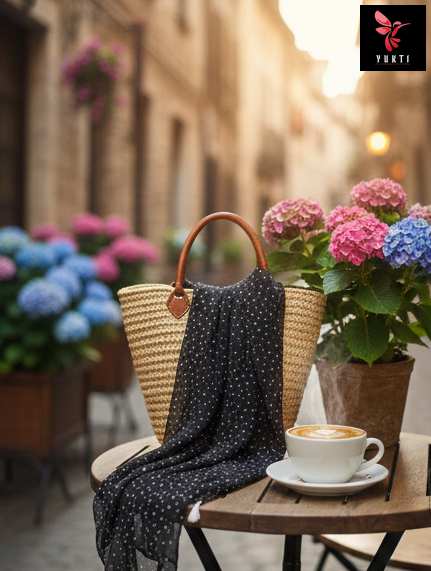 Classic polka dots on lightweight chiffon for effortless chic styling.