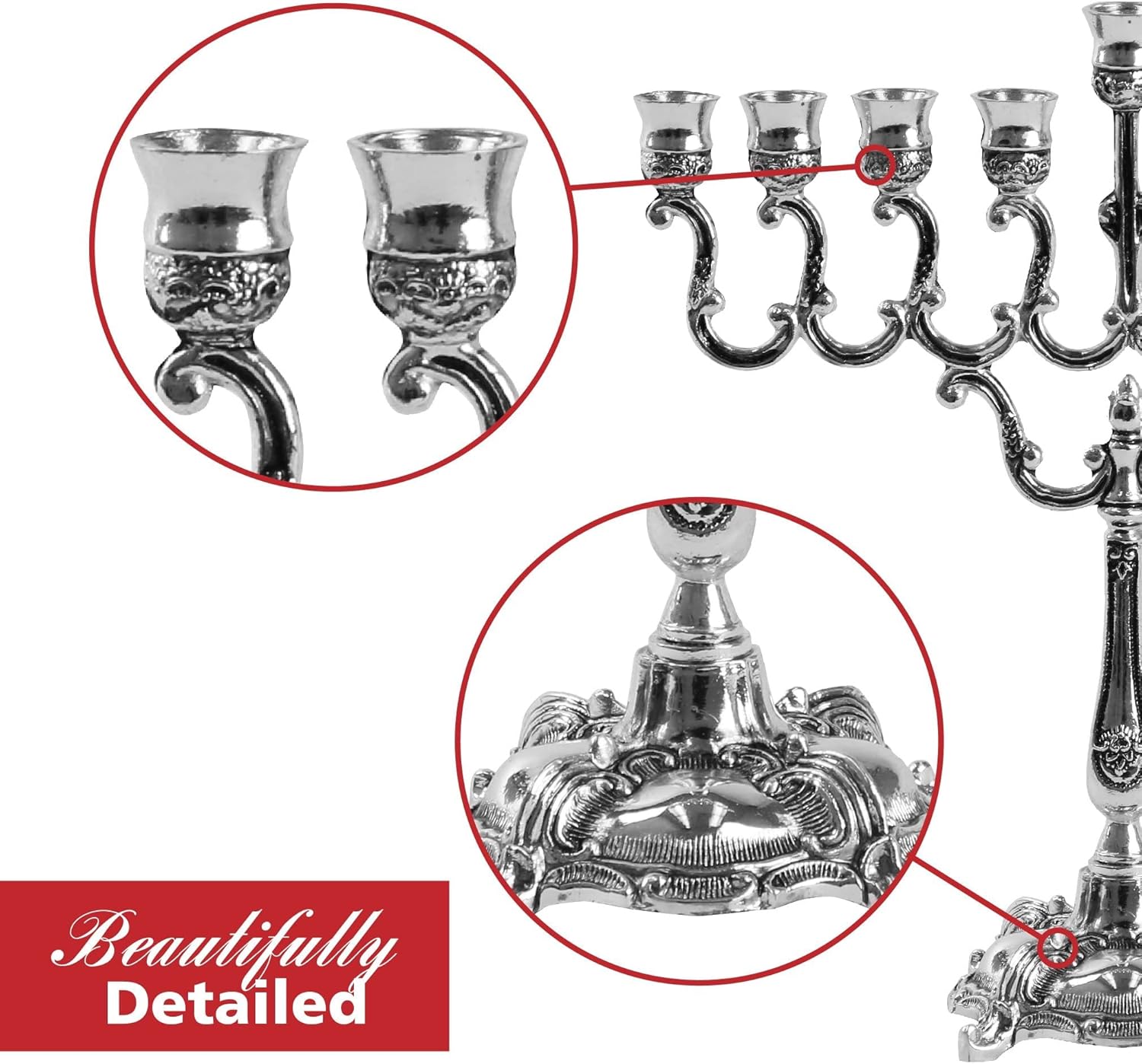 QUALITY CRAFTED: Made with premium grade materials, and high quality construction, our menoras stand sturdy and upright while keeping candles or glass cups steady for safe use.