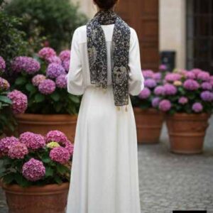 Delicate florals with a soft shimmer for graceful feminine charm.